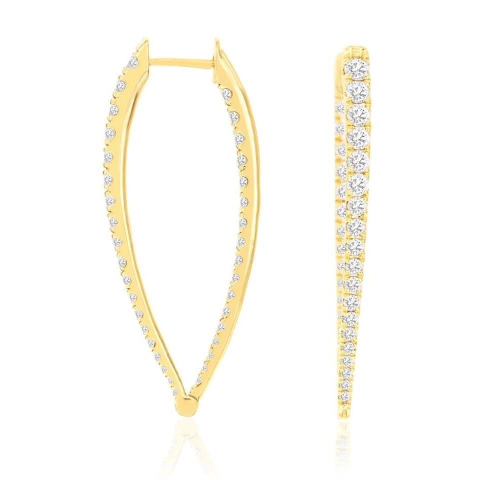 These exquisite earrings feature round natural diamonds, elegantly set in luxurious 14K yellow gold. With a total weight of 2.10 carats, these hoops are a perfect blend of sophistication and beauty.