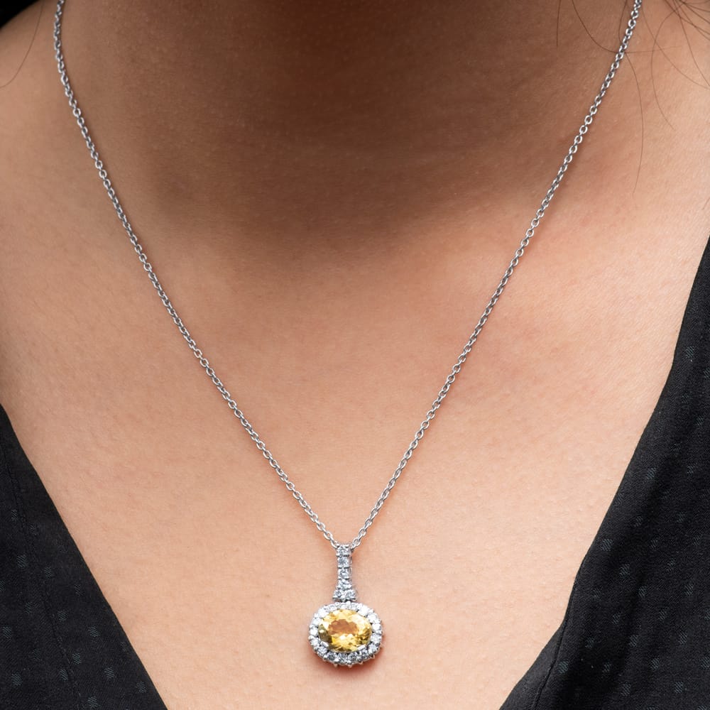 Lab Grown Golden Beryl and Diamond Halo Pendant