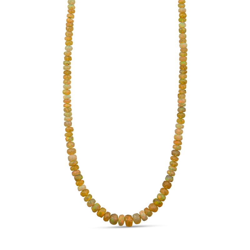 This necklace features opal beads with a sterling silver chain. It is perfect for layering or adding your favorite charms. The length is adjustable from 16-18″.