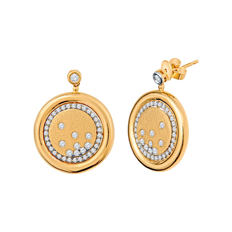 Elevate your style with these graceful drop earrings, crafted from 14 karat yellow gold and adorned with 0.65 carats of round, natural diamonds. Their radiant sparkle and sleek design make them a perfect addition to any elegant outfit.