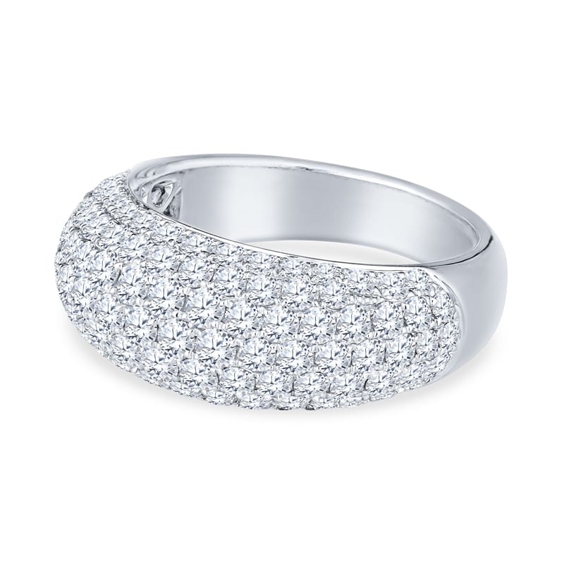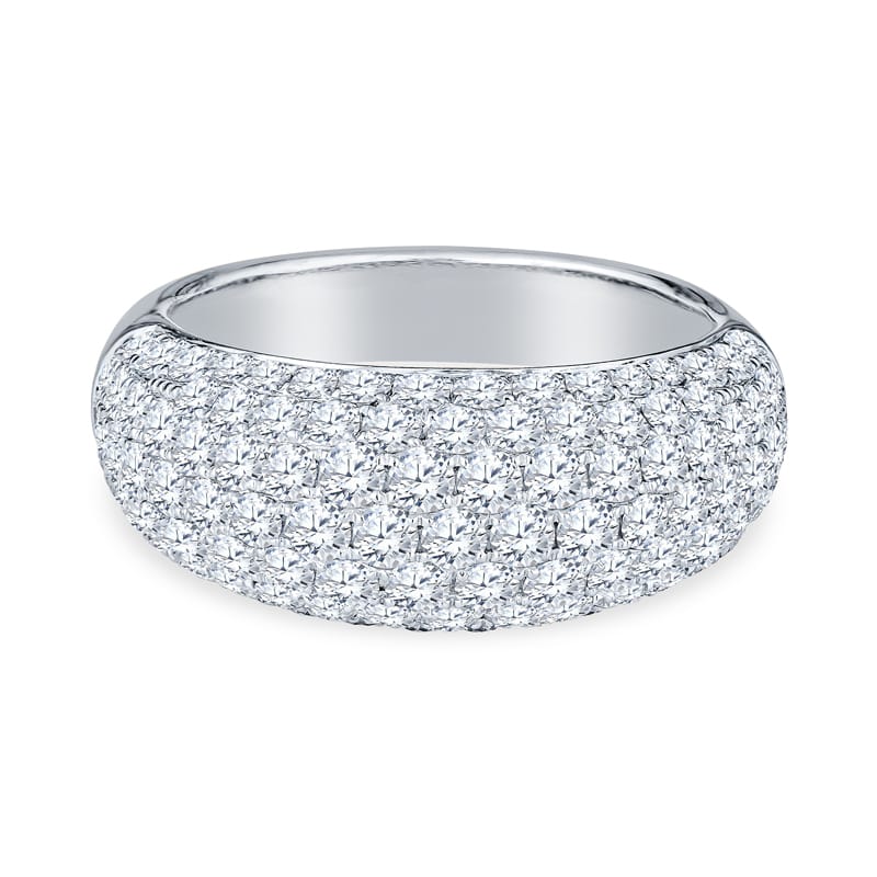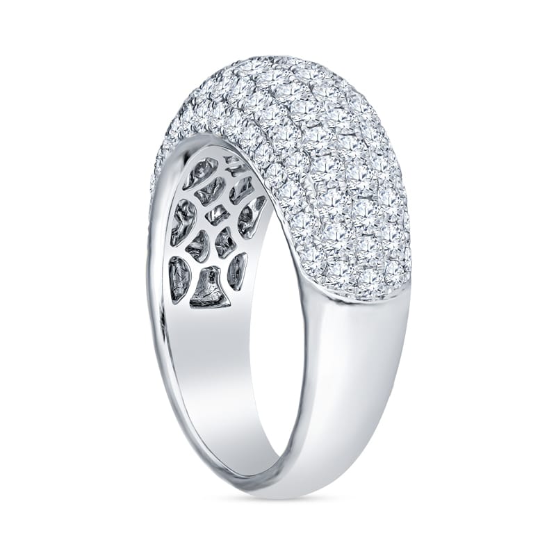 This fashion ring features 109 round pave diamonds with a total carat weight of 2.43 carats set in 18 karat white gold. It is currently a size 6.5 but can be resized upon request.