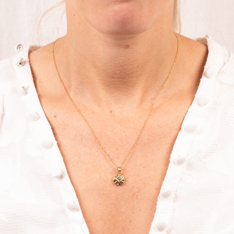 Elevate your style with this elegant pendant featuring a 0.15ct round diamond elegantly set in luxurious 18 karat gold. The 18-inch length with a secure lobster clasp closure makes it a perfect accessory for any occasion.